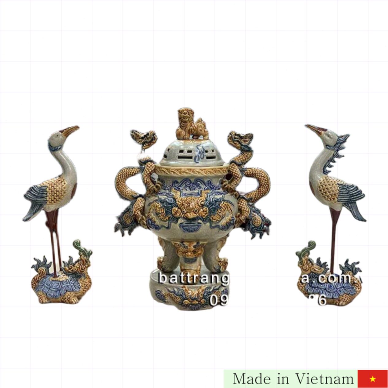 Bộ tam sự bằng gốm sứ rạn cao 52 cm는 전통과 품격을 동시에 담은 최고의 장식품입니다. 탁자 위에 올려 놓으면 집안 분위기를 한층 엄숙하고 따뜻하게 만들어 줍니다. 이 제품은 운과 재물, 명예를 불러오는 영물들의 힘을 담아 모든 가족 구성원의 삶에 긍정적인 변화를 가져다줍니다. ✨