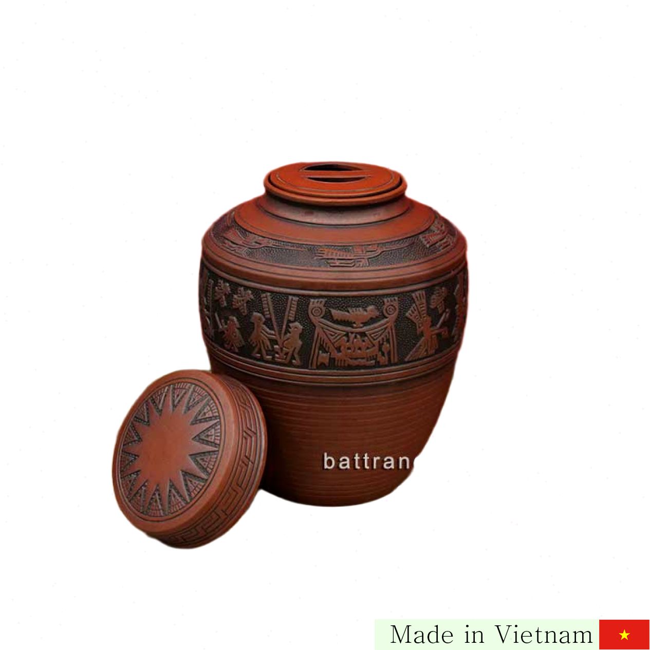 10리터 동종 항아리는 베트남 전통 동종 문양이 촘촘히 새겨져 있어, 단순한 발효 도구를 넘어 예술 작품이자 문화의 상징입니다. 뚜껑 또한 매우 세밀하고 아름답게 만들어져 소장 가치를 높입니다.