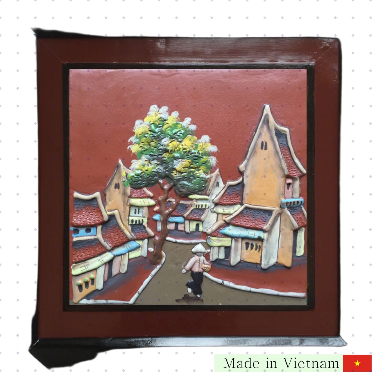 베트남 바트찬(Bát Tràng) 지역에서 정성껏 제작된 이 작품은 빨간 점토로 만들어져, 고온(약 1000도 이상)에서 구워져 내구성이 뛰어납니다. 고품질 재료 덕분에 선명한 색감과 디테일이 오래 유지됩니다. 섬세한 부조 기법과 따뜻한 색감의 조화로 옛 하노이 거리의 고즈넉한 분위기와 일상을 생생하게 표현합니다.