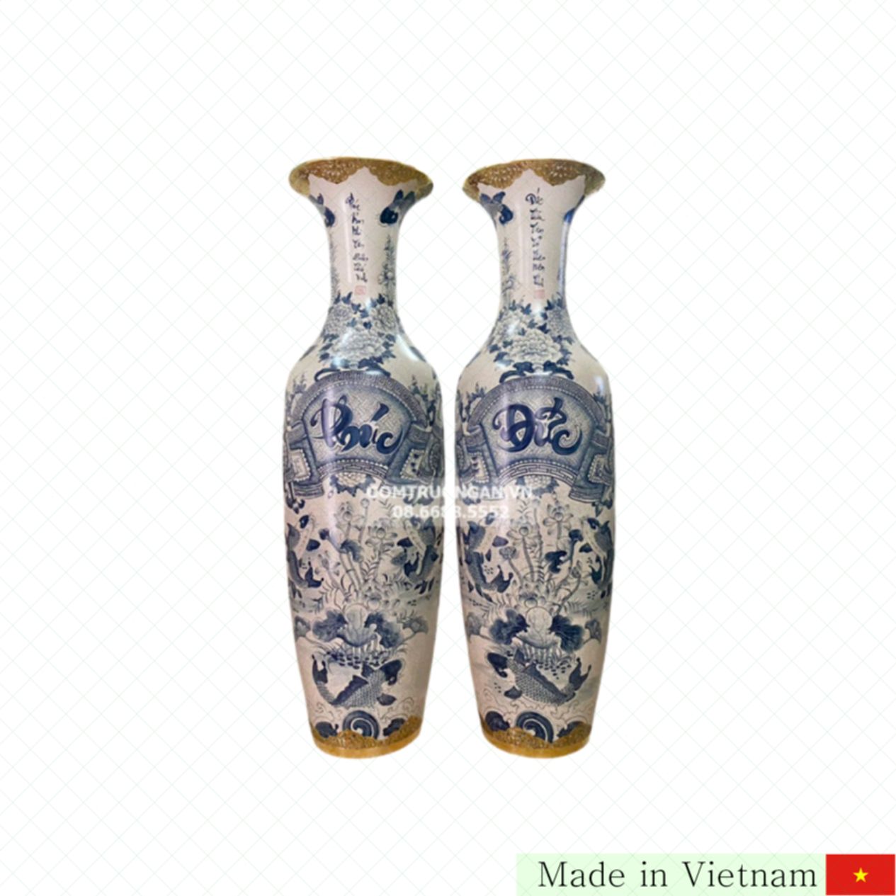 바트짱 전통 기법으로 제작된 이 복 덕 청자 화병은 1.6미터의 웅장한 크기와 동으로 감싼 고급스러운 마감으로 어떤 공간도 품격 있게 만들어 줍니다. 전통적인 디자인에 현대적 감각이 더해져, 가정의 기도 공간이나 사당, 명당 등 넓은 장소에 이상적입니다.
