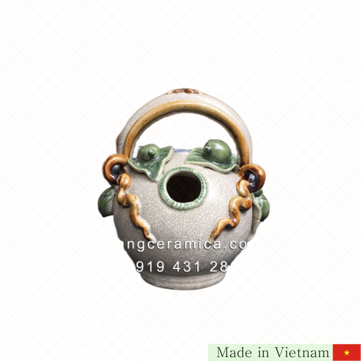 독특한 원형의 작은 입구 디자인과 정교한 조각 장식이 돋보이며, 베트남 전통 문양인 쭈꾸미, 꽃, 대나무, 박쥐 등이 섬세하게 표현되어 있습니다.