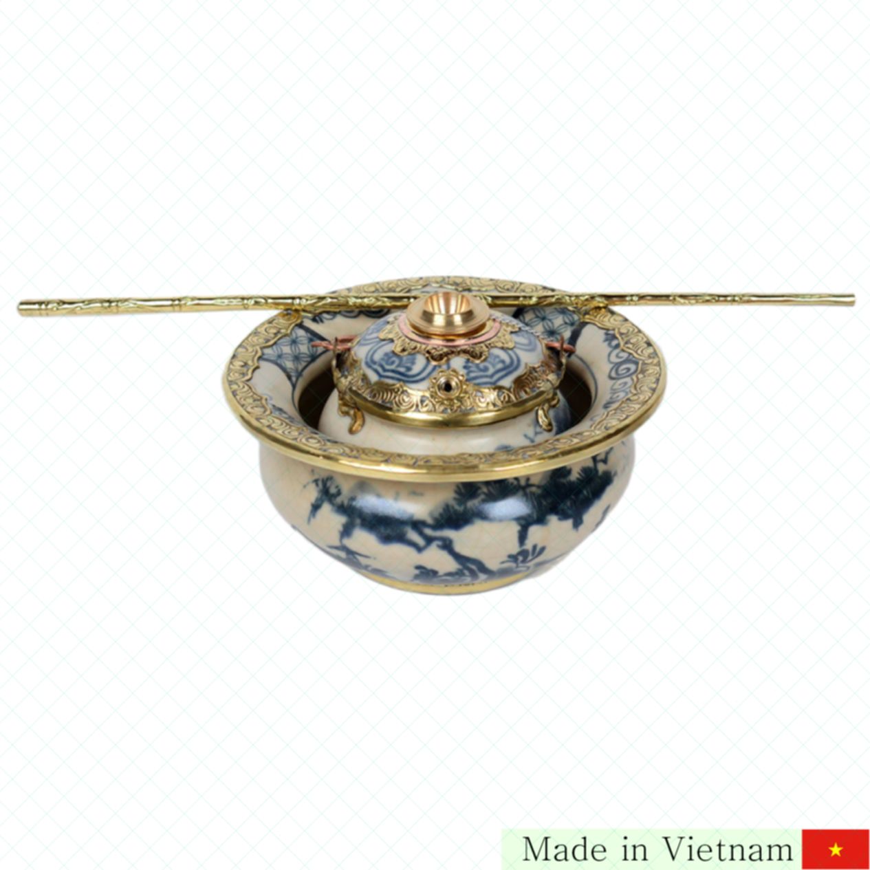 라붕 낚시 문양이 섬세하게 새겨진 동색 경단 도자기는 바트짱(Bát Tràng) 도자기 장인들이 정성스럽게 빚어낸 걸작입니다. 고대 도자기에서 영감을 받은 독특한 금이 간 비색 유약(멘)은 고풍스러운 질감과 깊은 멋을 자아내며, 집안 어디에 두어도 특별한 분위기를 완성합니다. 이 제품은 전통과 현대가 어우러진 소장가치 높은 예술품입니다.