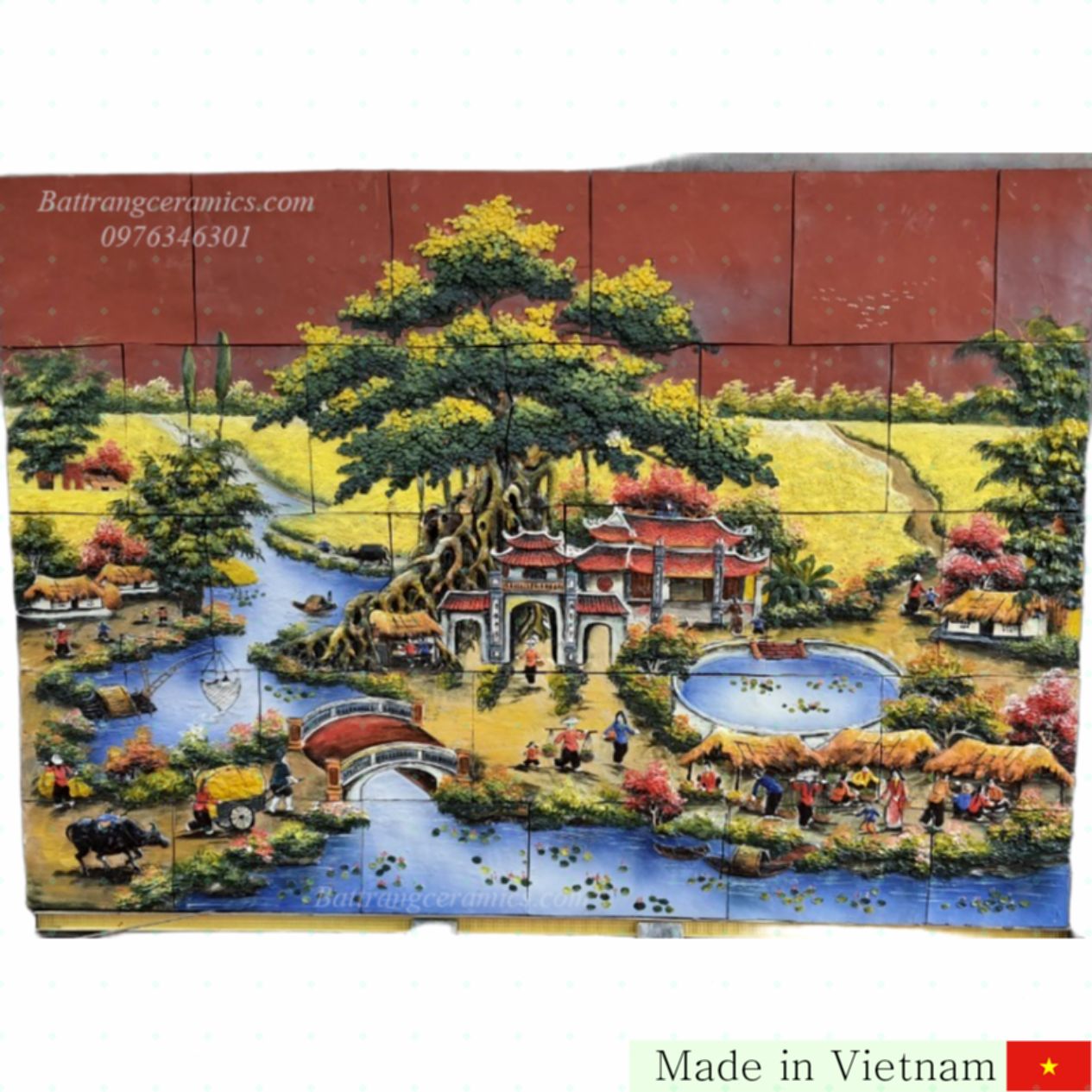 전원 풍경의 소재는 오래된 마을의 정겨운 정경인 느티나무, 우물, 마당의 정자 등으로 구성되어 있어 베트남 전통의 소박한 삶을 생생하게 떠올리게 합니다. 이 작품은 단순한 장식에 머무르지 않고 편안하고 포근한 분위기를 연출하며, 가족과 손님을 위한 따뜻한 공간을 완성시켜줍니다.