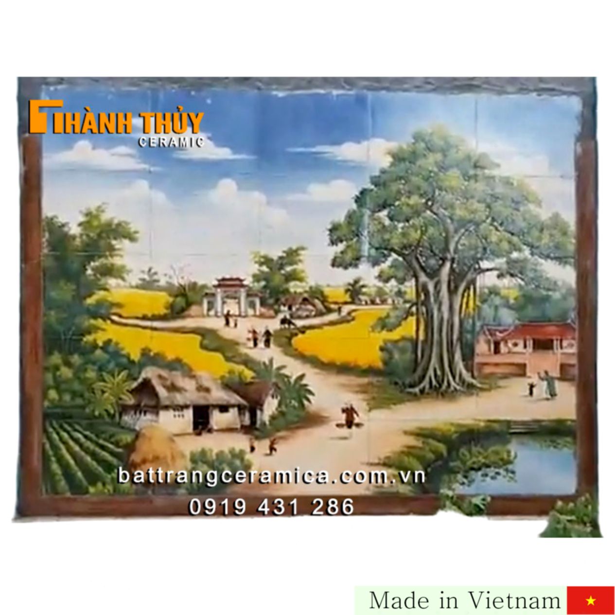 우리의 전통과 감성을 담은 베트남 북부 농촌 풍경 을 배경으로 한 화려한 도자기 벽화입니다. 이 작품은 고향의 정취를 고스란히 담아내며, 오래도록 기억될 당신의 공간에 특별한 의미를 더해줍니다. 고풍스러운 버드나무와 우물, 마을 광장 은 세대를 넘어 사랑받는 상징입니다.