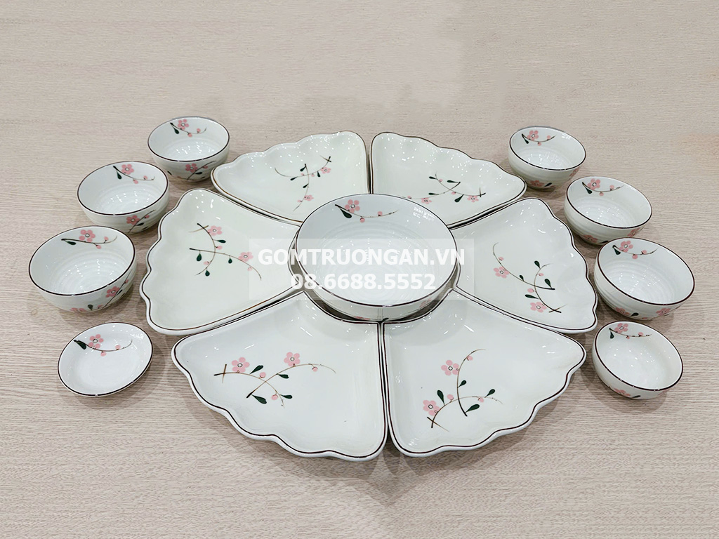 Bát đĩa hoa mặt trời mâm cúng gia tiên đào hồng men kem은 뛰어난 디자인과 품질로 가족의 제사상과 일상 식사 모두를 빛내는 최고의 세트입니다. 이 제품은 세련되고 부드러운 색감과 정교한 꽃무늬로 많은 이들의 사랑을 받고 있어, 선물용으로도 안성맞춤입니다. 🌸