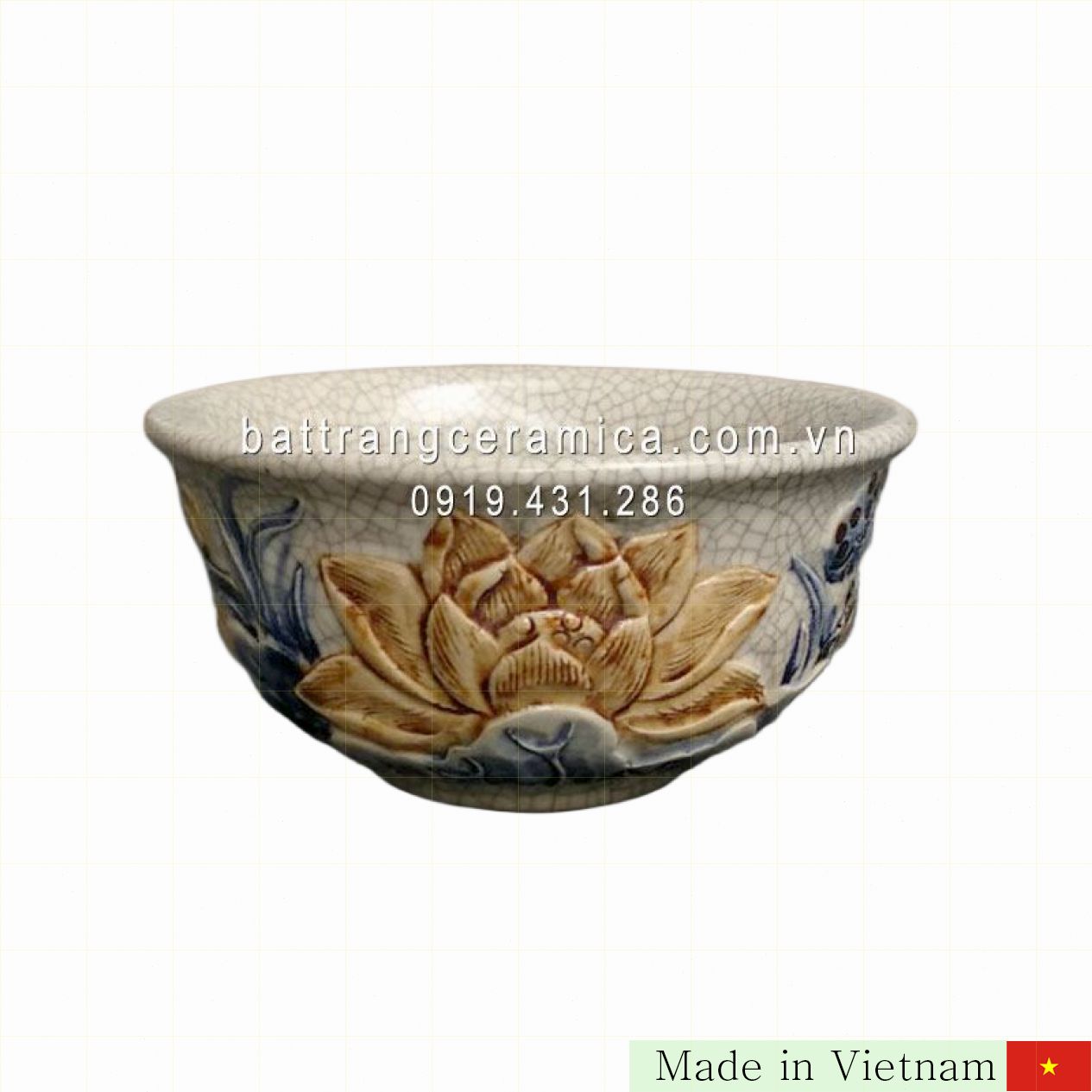 Bát Tràng의 전통을 담은 고급 세라믹, Bát thờ sen men rạn nổi는 오랜 역사와 장인정신이 깃든 명품입니다. 이 제품은 독특한 멋의 크랙 유약으로 고요하고 고풍스러운 분위기를 만들어 집안 제단에 완벽한 조화를 이룹니다.