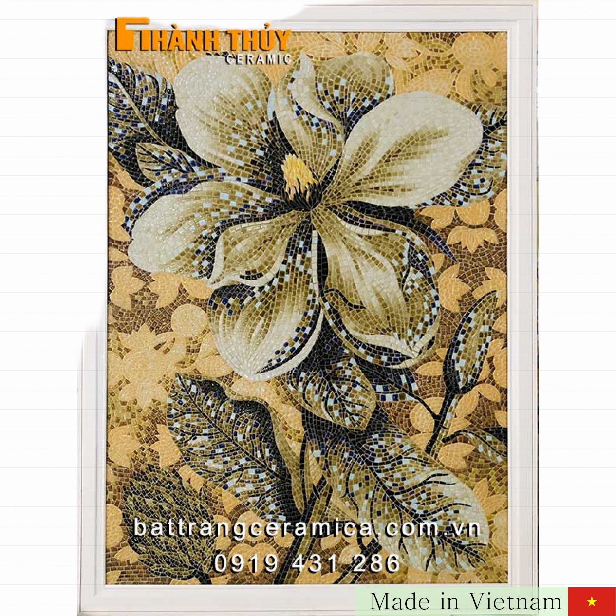현대적인 감각의 Bát Tràng 도자기 모자이크 벽화는 거실 공간에 세련된 분위기를 더해줍니다. 고급 도자기로 정교하게 제작되어 색감과 디테일이 뛰어나, 집안 어느 공간에도 완벽하게 어울립니다. 집을 방문하는 모든 이들에게 감탄을 자아내는 인테리어 소품입니다.