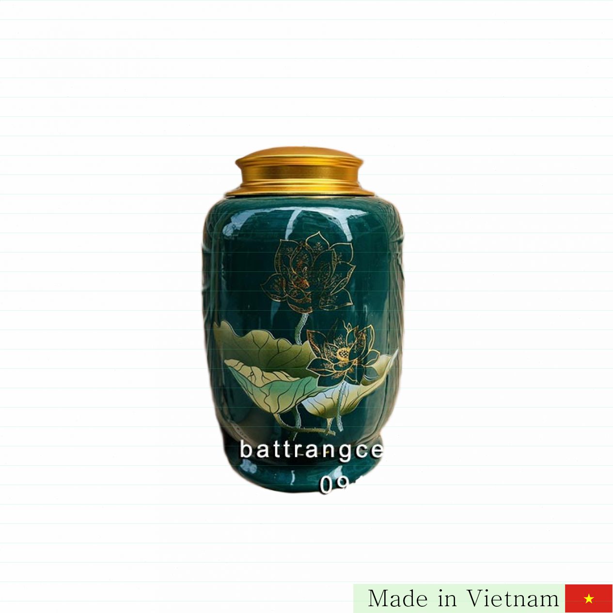 Bát Tràng 도자기로 완성된 멋진 연꽃 차 항아리.