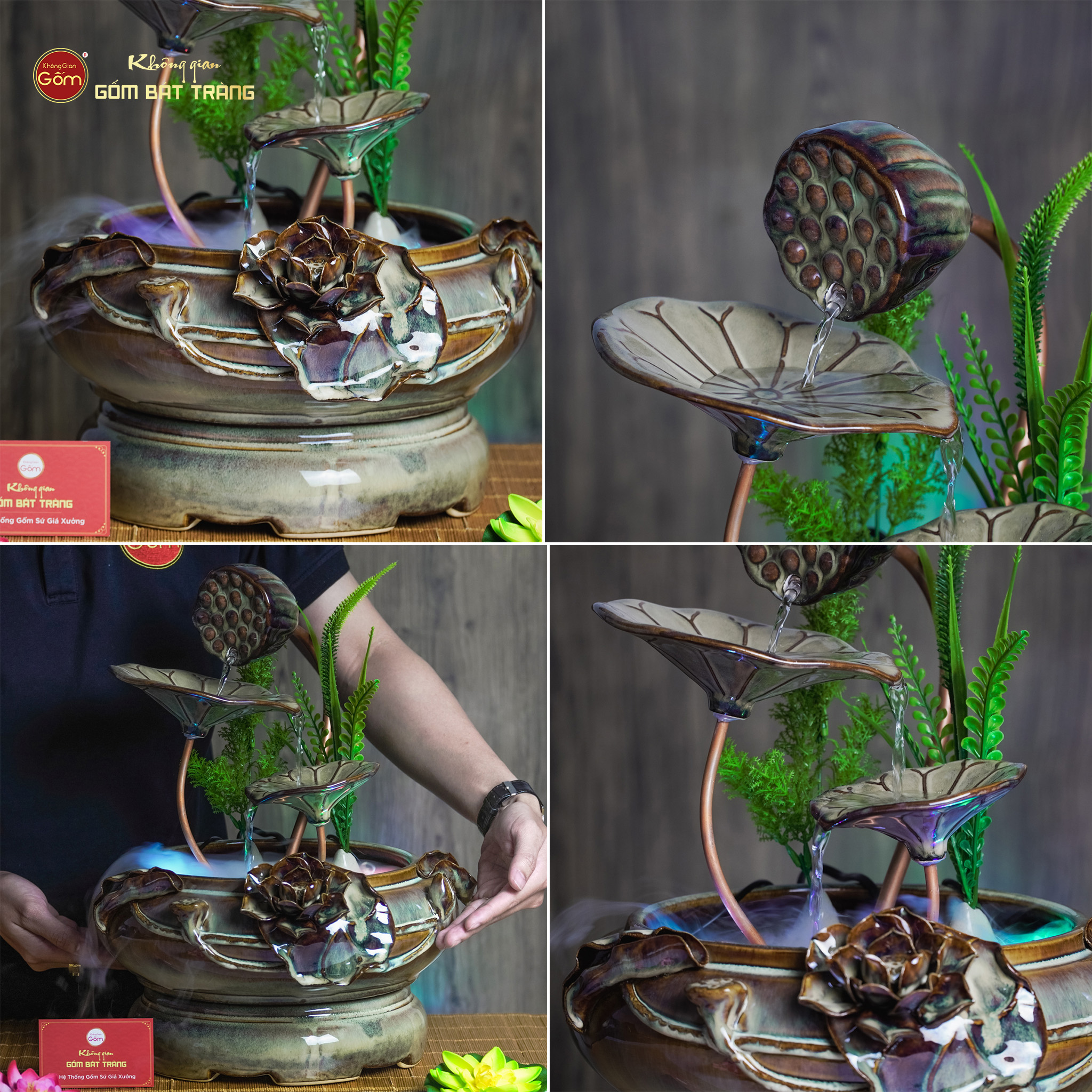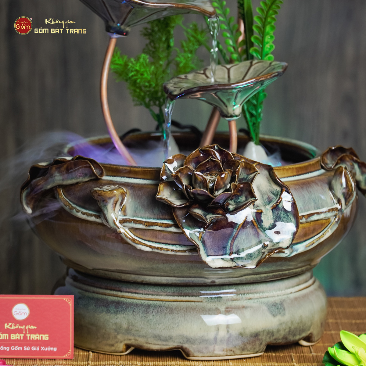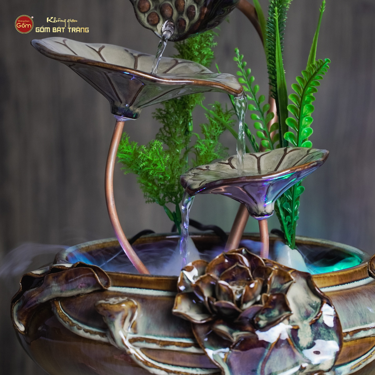 Bộ Thác Nước Phong Thủy Sen Gấm Đắp Nổi은 고급 도자기 재질과 세련된 디자인이 만난 예술작품입니다. 전통적 아름다움과 동양 풍수 철학을 완벽하게 결합하여 집이나 사무실 공간에 평안과 번영을 가져다줍니다. 고유한 입체 연꽃 문양과 부드러운 물 흐름이 어우러져 마음의 안정을 선사합니다.