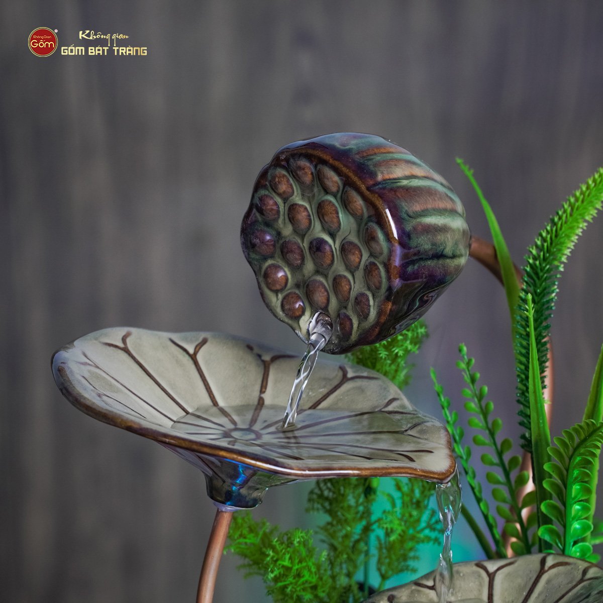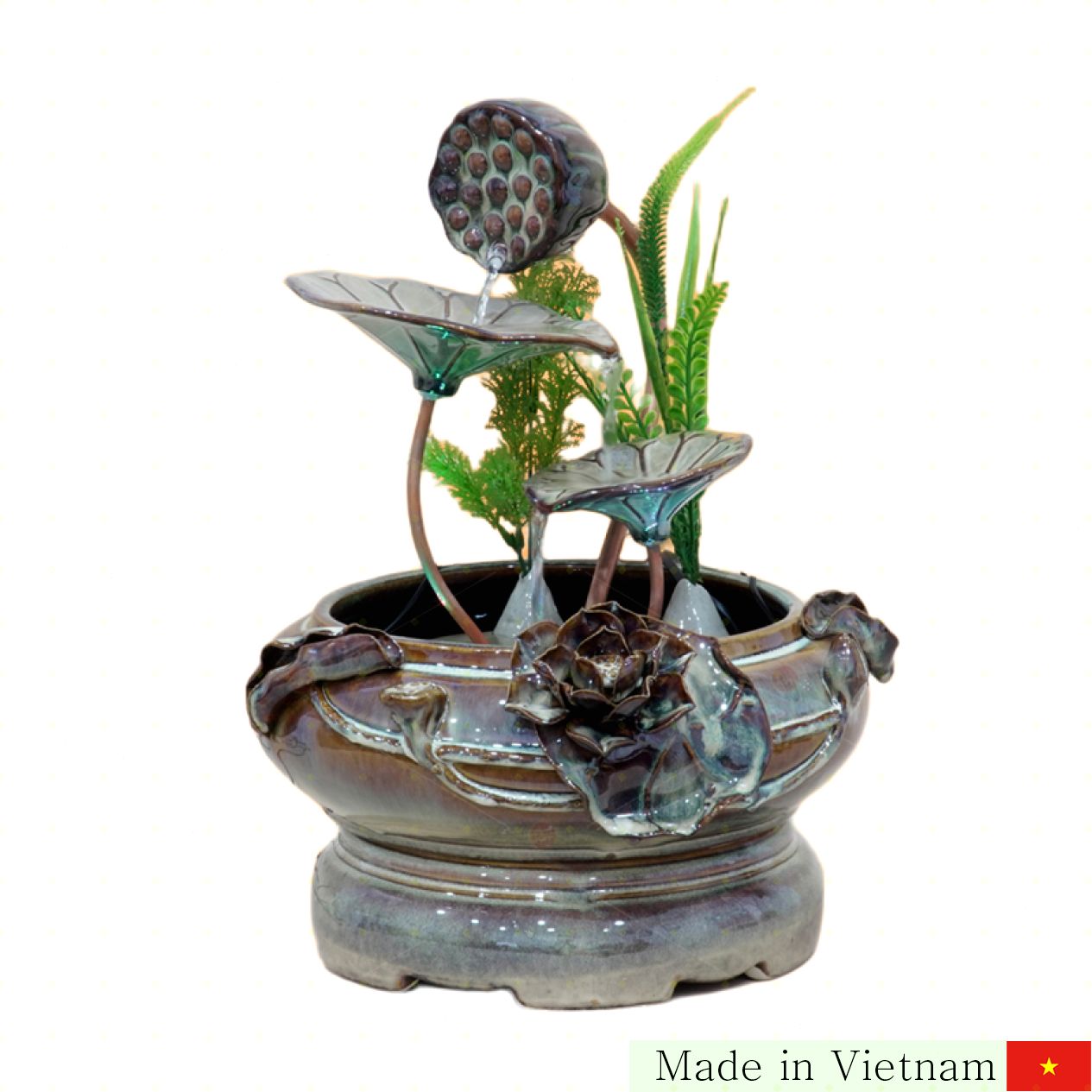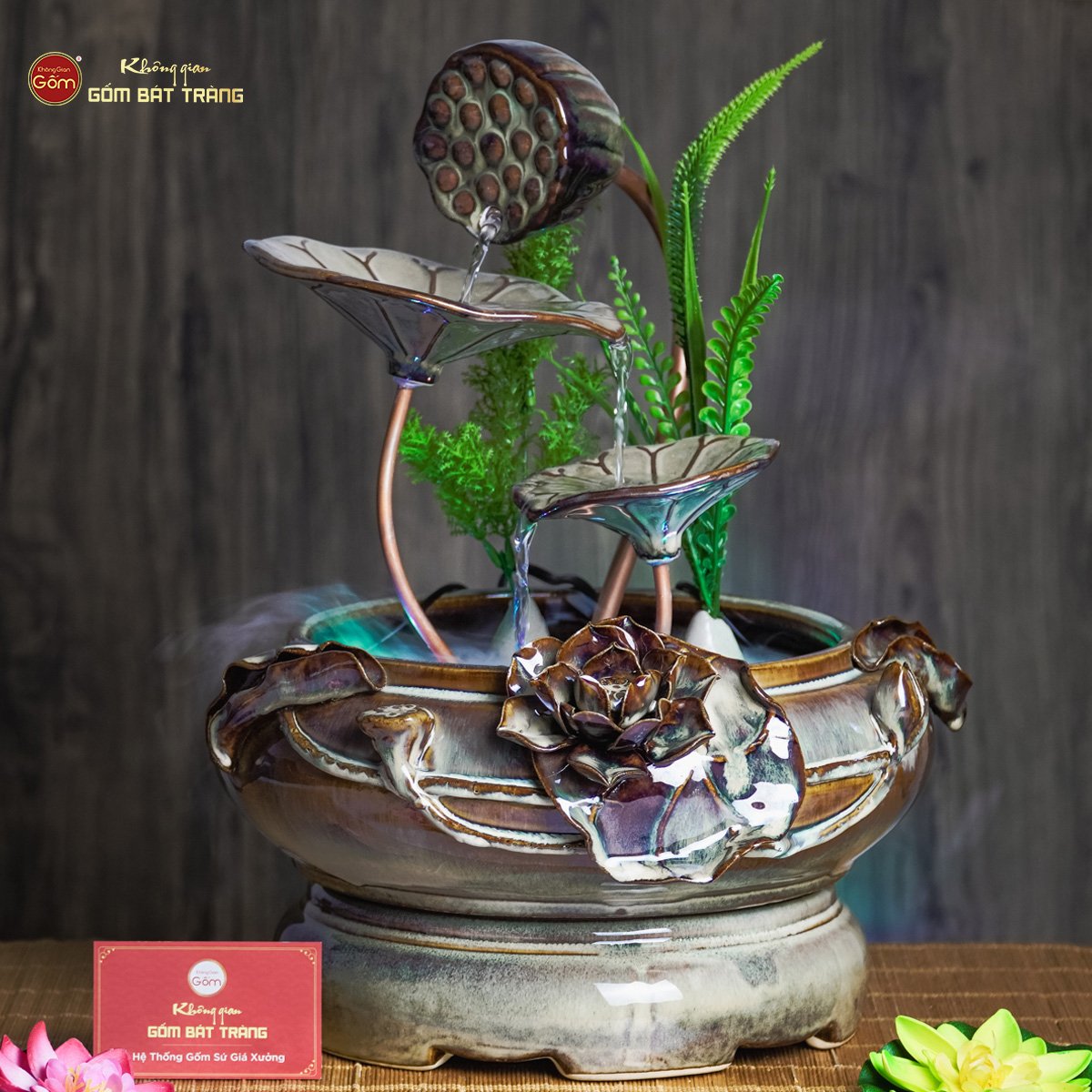 Bộ Thác Nước Phong Thủy Sen Gấm Đắp Nổi은 고급 도자기 재질과 세련된 디자인이 만난 예술작품입니다. 전통적 아름다움과 동양 풍수 철학을 완벽하게 결합하여 집이나 사무실 공간에 평안과 번영을 가져다줍니다. 고유한 입체 연꽃 문양과 부드러운 물 흐름이 어우러져 마음의 안정을 선사합니다.