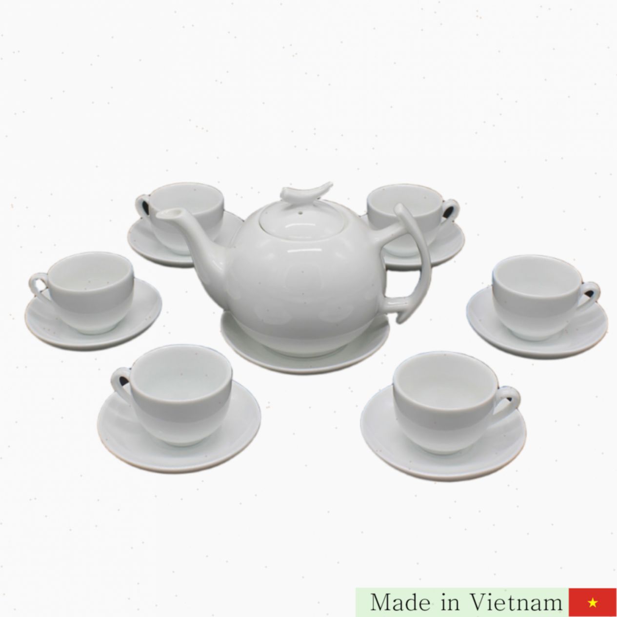 우리의 09번 로고 차 세트는 전통과 현대가 어우러진 바트짱(Bát Tràng) 도자기 제품입니다. 높이 11cm, 길이 20cm의 우아한 주전자와 4cm 높이에 5cm 지름의 찻잔 6개, 그리고 7개의 찻잔 받침으로 구성되어 있어 풍부한 구성과 실용성을 자랑합니다. 깔끔한 흰색 유약과 정교한 라인이 돋보이는 디자인으로, 어떤 공간에도 세련된 분위기를 더합니다.