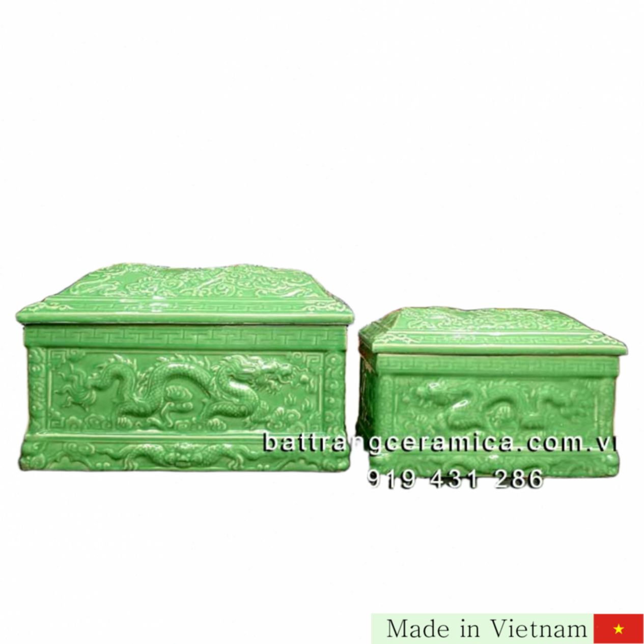 이 청옥색 미니 유골함은 전통적 제품과는 차별화된 현대적 감각과 정교한 공예가 돋보입니다. 바트짱(Bát Tràng) 도자기 장인의 손길로 뚜껑과 몸체의 섬세한 용 조각이 선명하고 아름답게 완성되었습니다. 내부는 소형 도자기 함과 외부의 큰 도자기 함으로 구성되어 '내림과 외림'의 전통 방식을 충실히 따릅니다.