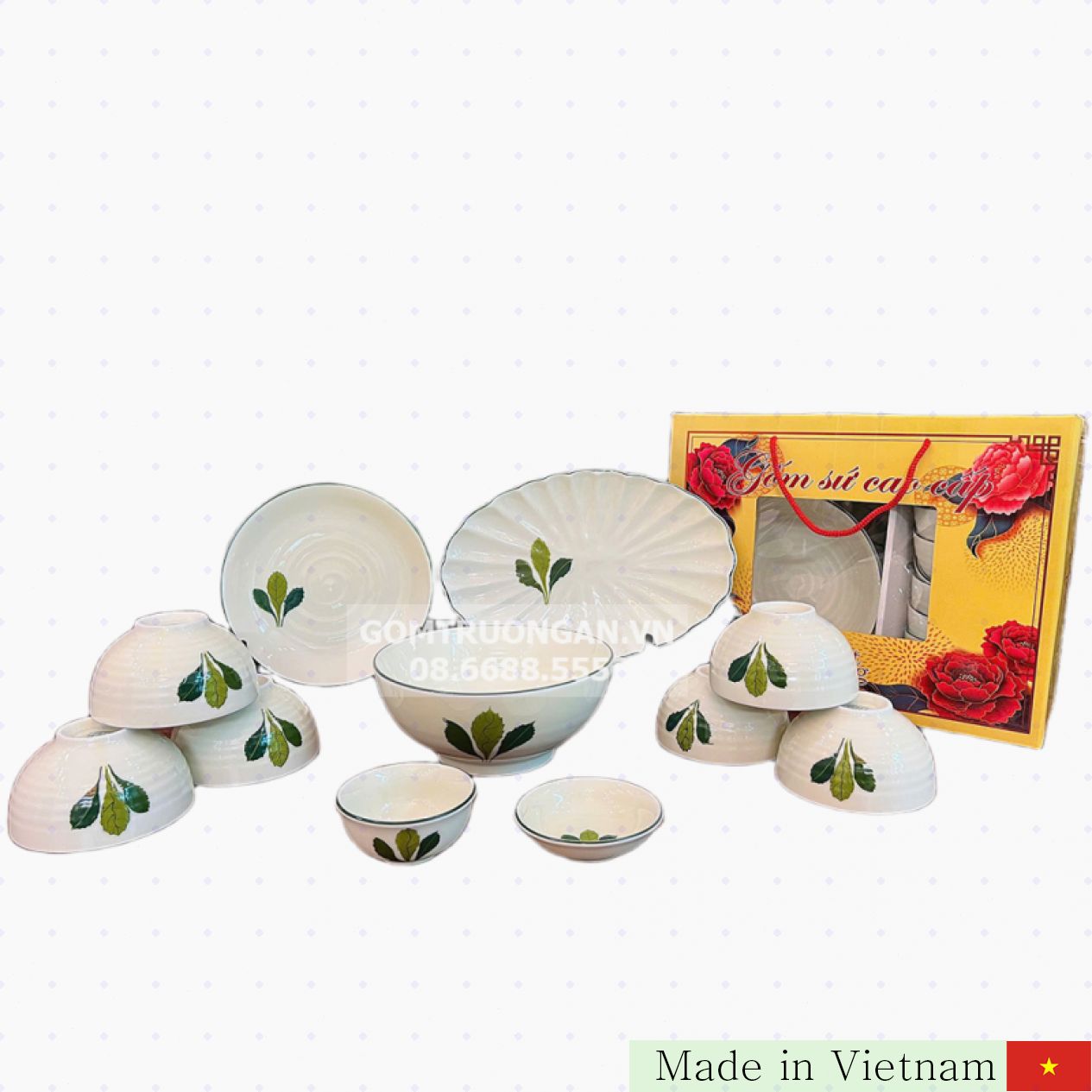 고급스러운 손그림 쑥 잎 문양의 바트창(Bát Tràng) 선물용 식기 세트로, 정교한 전통 수공예의 아름다움을 집안에 선사합니다. 이 제품은 고품질 도자기로 만들어져 내열성이 뛰어나 전자레인지 사용도 가능해 실용적입니다. 완벽한 구성과 세련된 디자인으로 특별한 선물용으로도, 집들이나 가족 식사에 매우 적합합니다.
