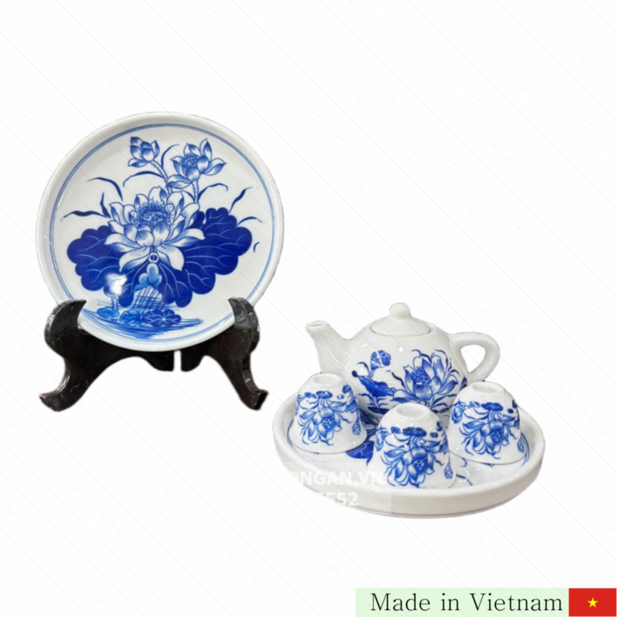 재질: 청자 백자 (Sứ trắng men lam)