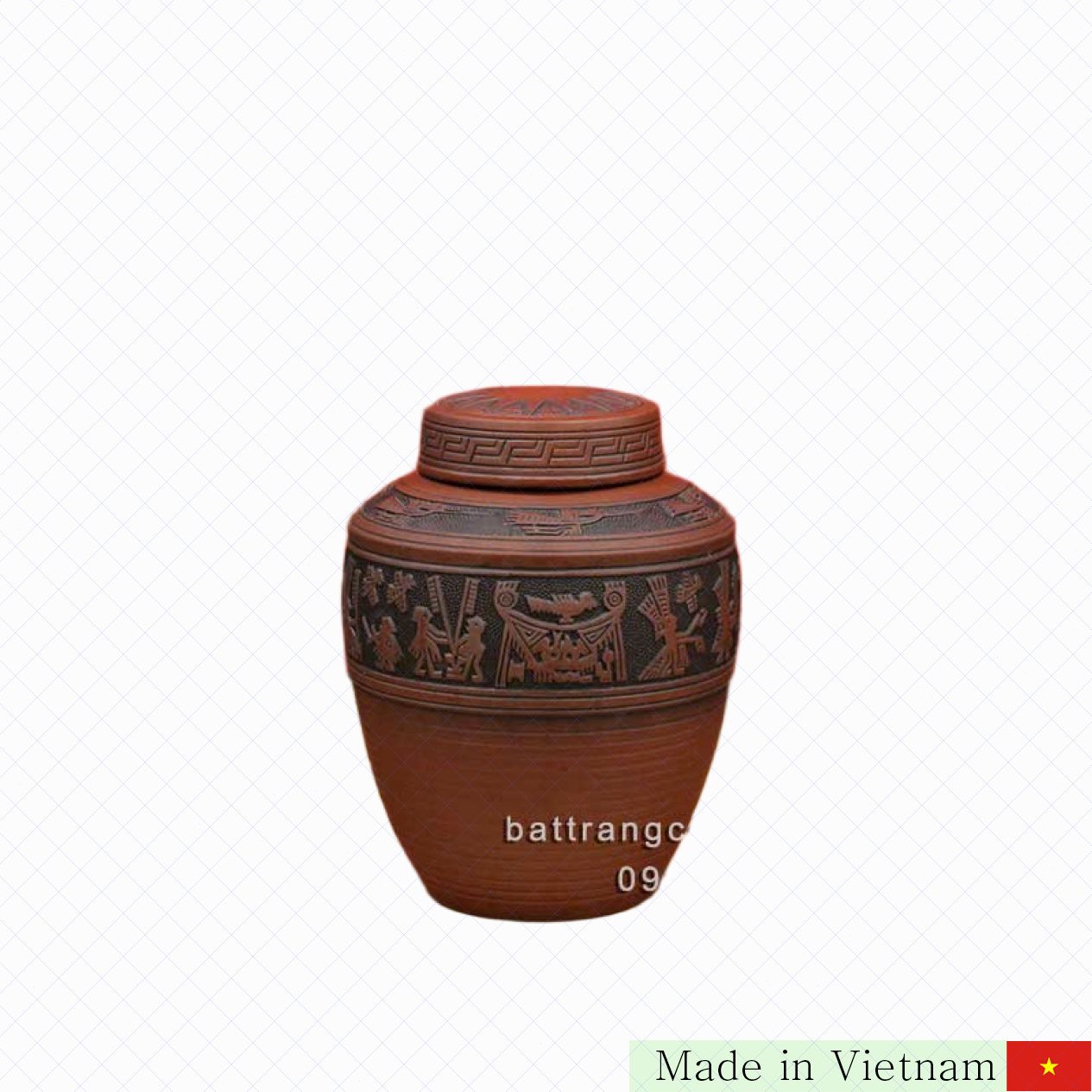 항아리 몸체에는 고대 동숭 문양이 섬세하게 음각되어 있어 독특한 미적 가치를 지닙니다.