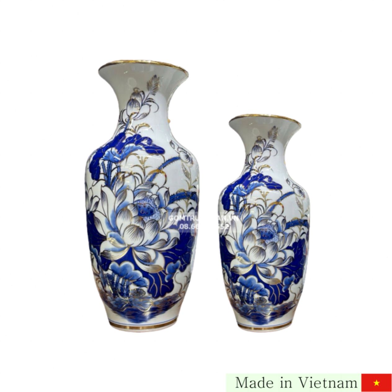 이 화병은 베트남 명품 도자기 브랜드인 바트짱(Bát Tràng)의 제품입니다. 최고급 백토에 청색 유약과 황금빛 금박 장식을 세밀하게 더해 세련된 아름다움을 완성했습니다. 40cm의 적당한 크기로 고급스러우면서도 다양한 공간에 잘 어울립니다.