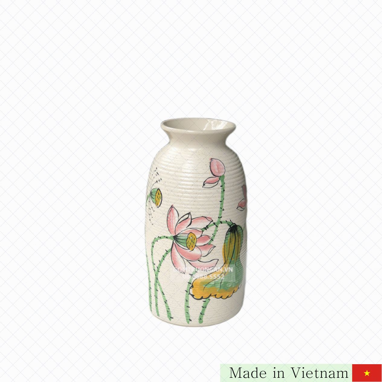 [Bát Tràng]에서 제작한 이 고급 도자기 화병은 전통적인 연꽃 무늬와 세련된 멋으로 집안 분위기를 한층 높여줍니다. 우아한 디자인과 독특한 멋이 어우러져 거실이나 사무실 책상에 두기에 완벽합니다. 탁월한 장식 효과와 함께 풍수 인테리어에도 안성맞춤입니다.