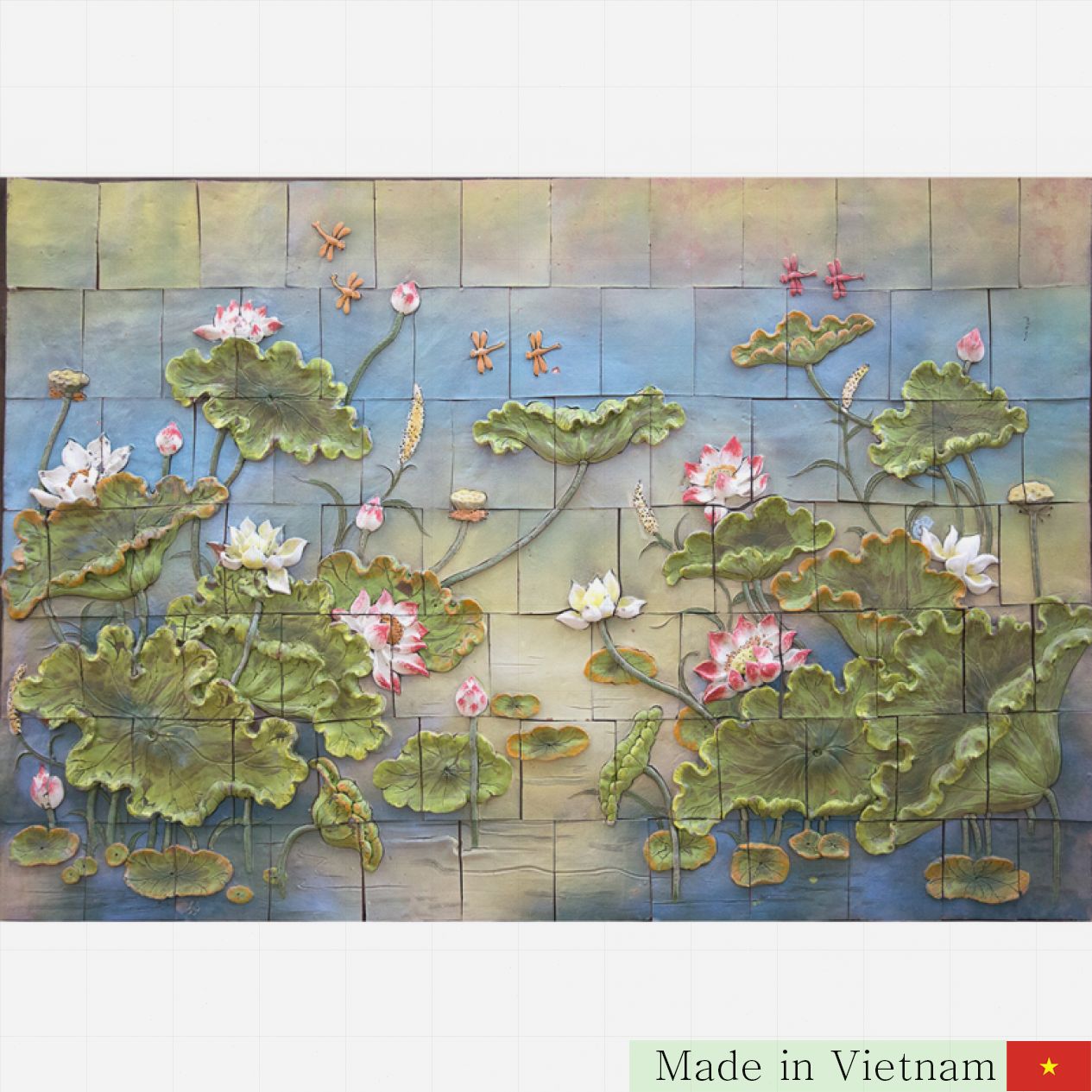 저희 제품은 전통의 미와 현대적 감각이 조화를 이루는 배트랑(바트짱) 도자기 공예의 걸작, 연못 연꽃 세라믹 벽 장식입니다. 자연에서 영감을 얻은 섬세한 연꽃 무늬와 정교한 입체 조각 기법으로 완성된 이 작품은 실내외 공간에 특별한 감성을 불어넣습니다.